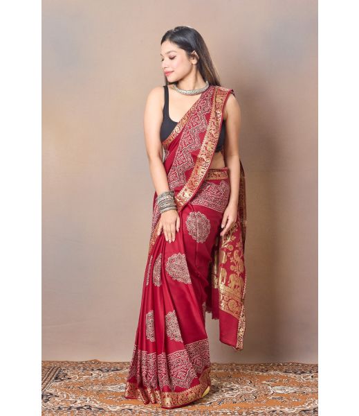 AJRAK WORK ZARI MODAL SILK SAREE
