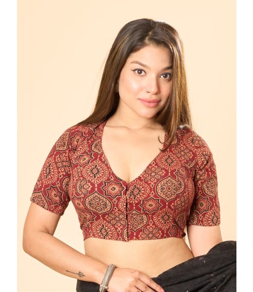 Cotton Ajrakh Sabyasachi Neck Printed Alterable Blouse