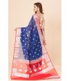 - Color: Blue with red and silver zari accents.