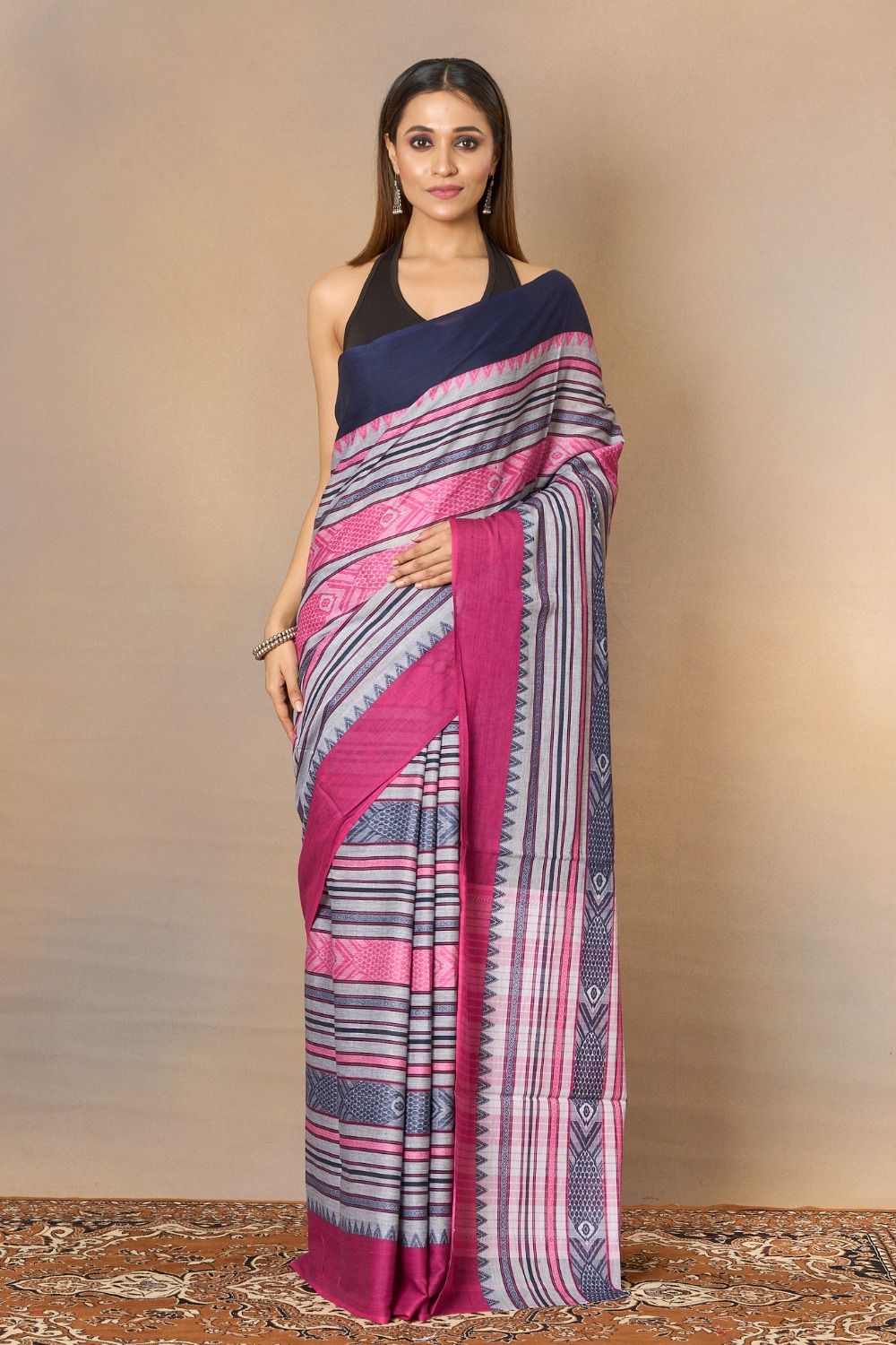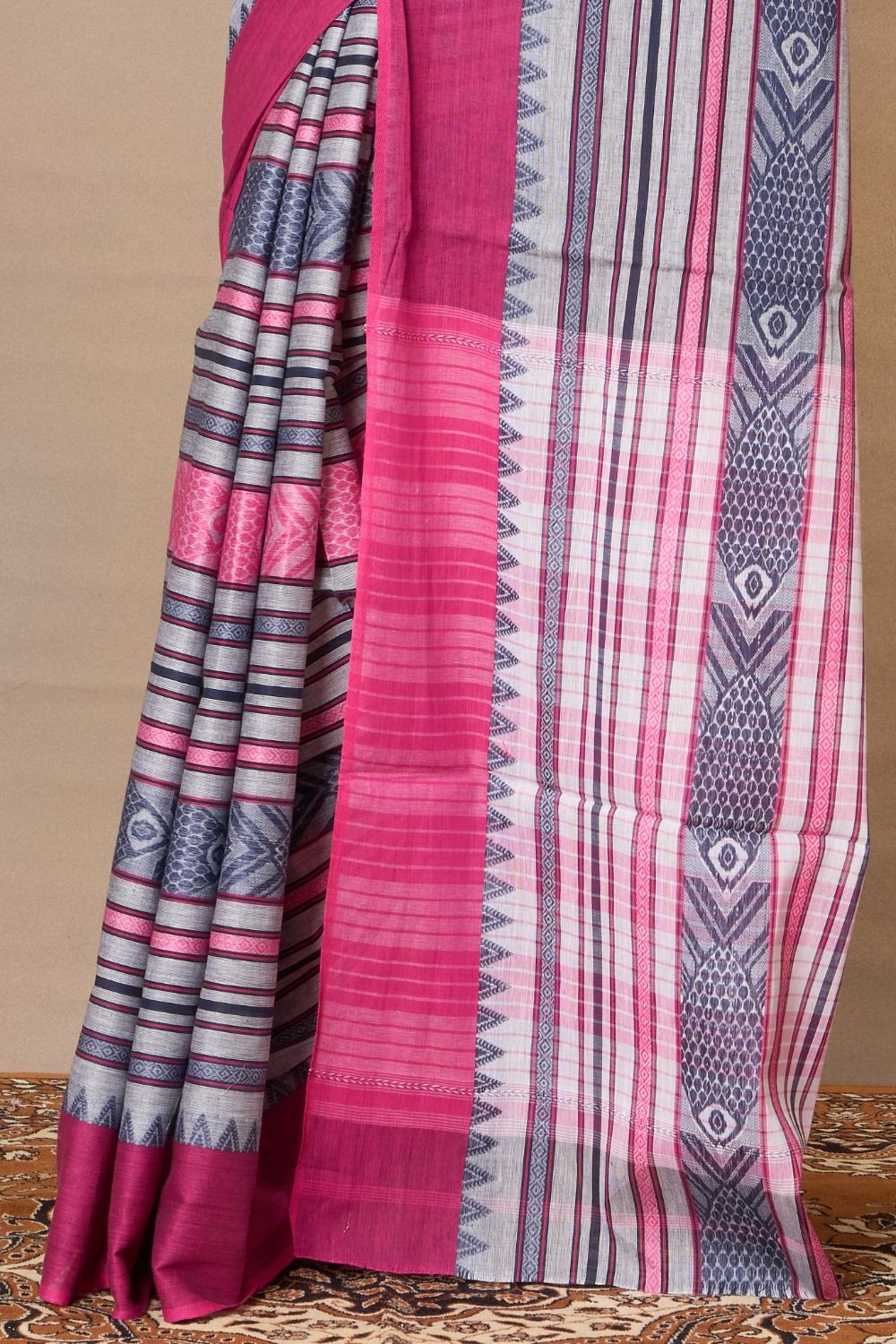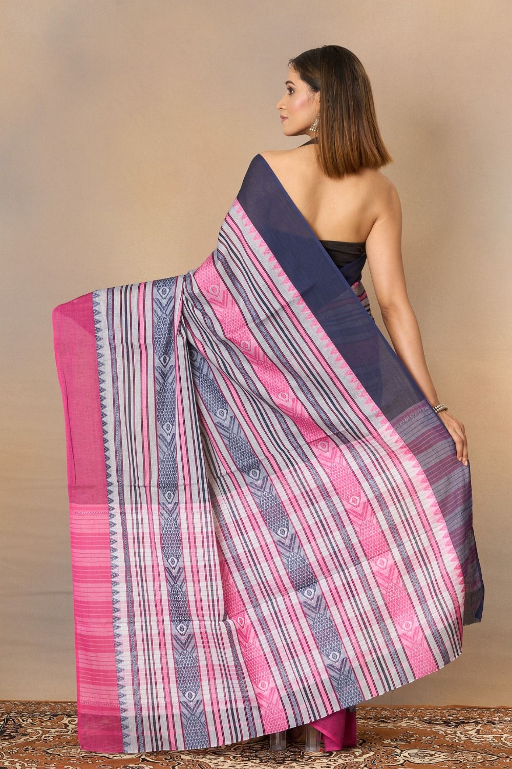 BEAUTIFULLY COMBINED PINK BLUE THREAD - COTTON HANDLOOM SAREE