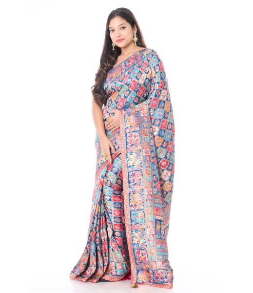 - Body: Vibrant multicolor patterns inspired by traditional Patola motifs featuring floral and geometric designs.