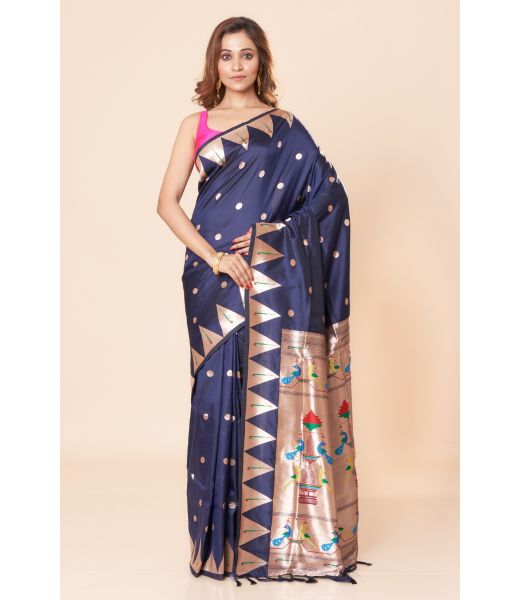 BLUE & GOLD PAITHANI SILK SAREE WITH MATCHING BLOUSE PIECE