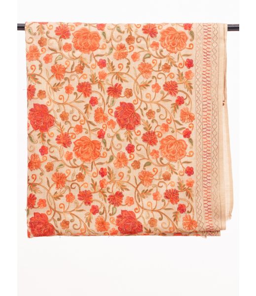 BROWN SHAWL WITH ALL OVER FLORAL EMBROIDERY WORK