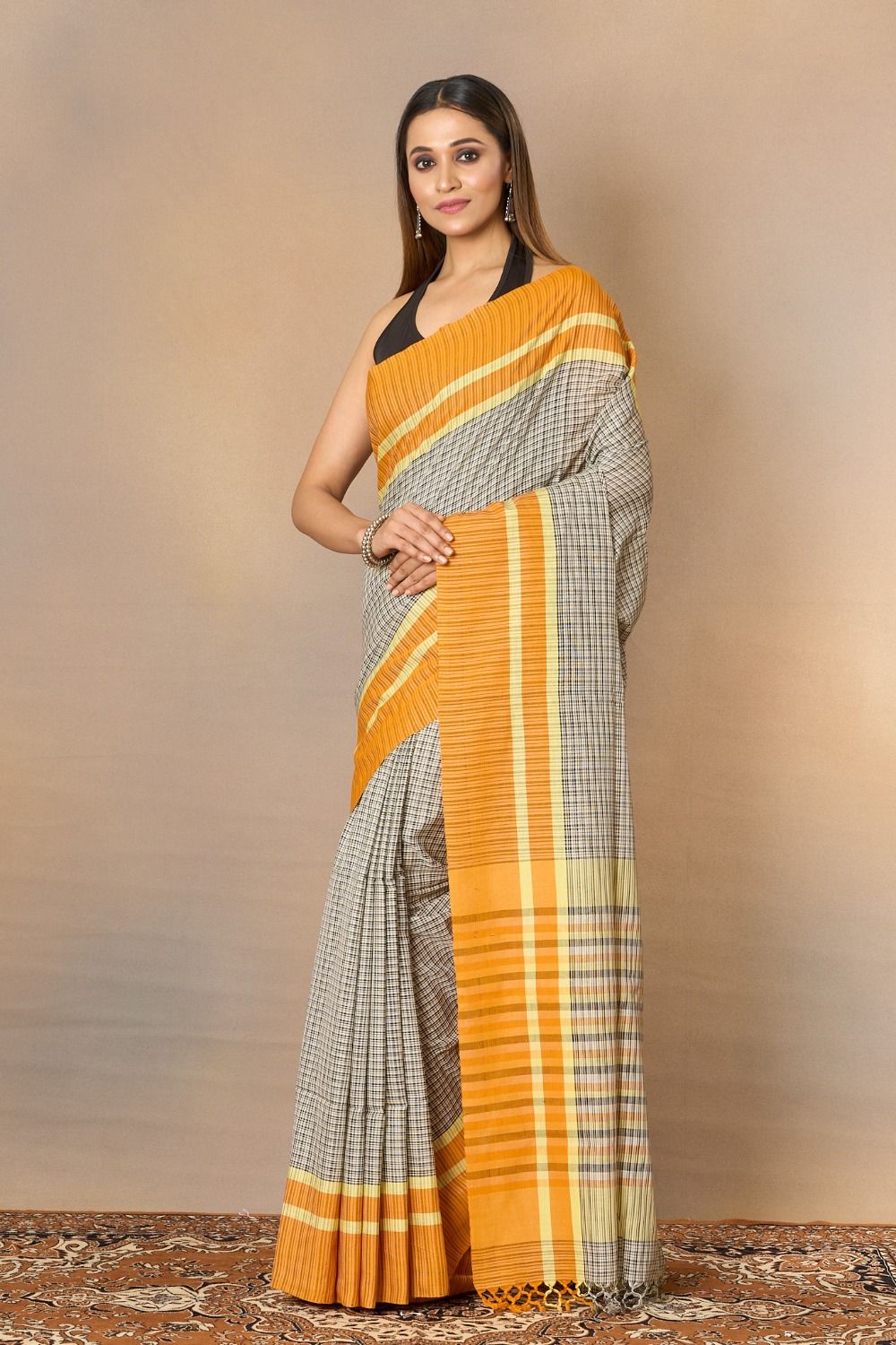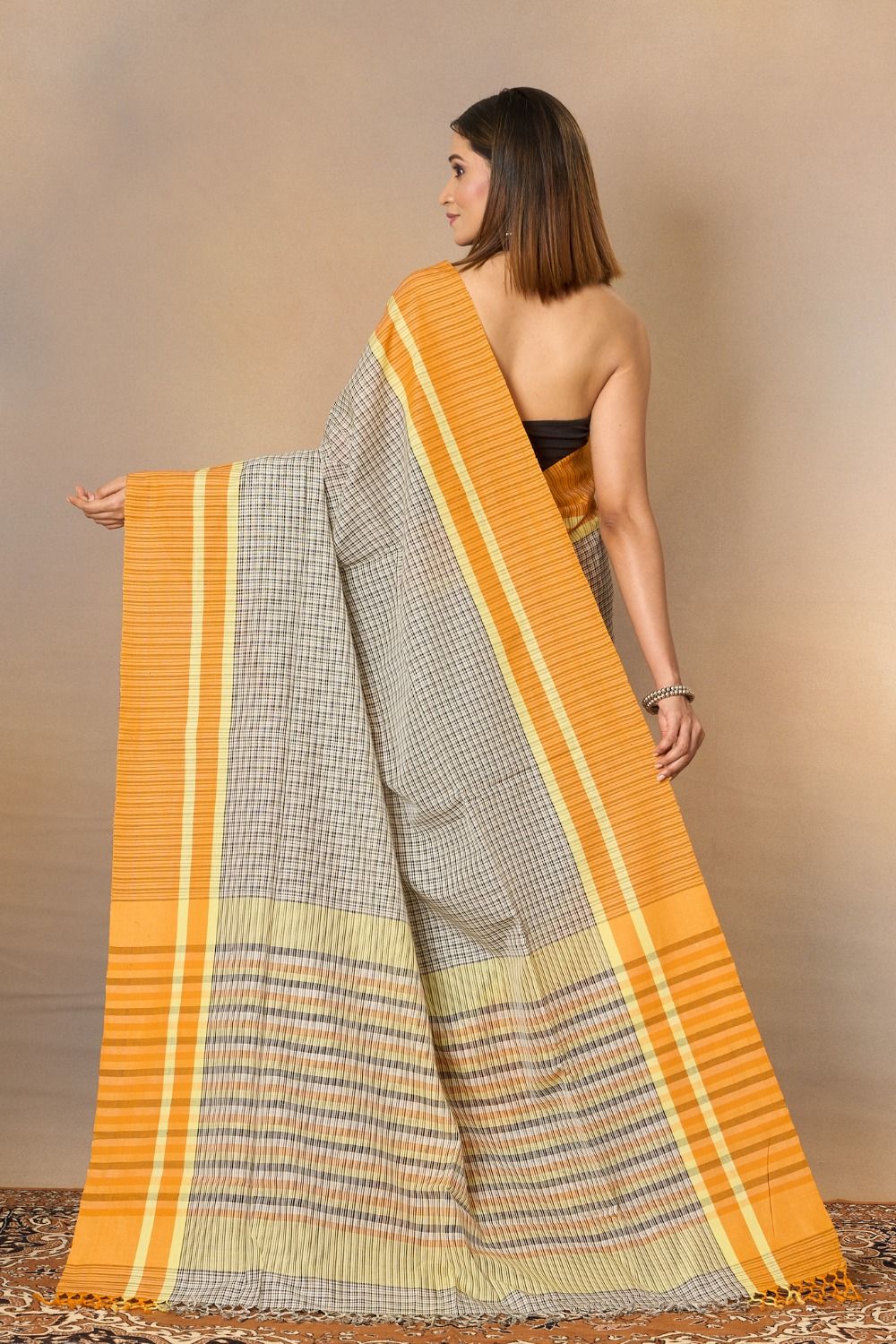 CLASSY ALL OVER CHEQUERED SAREE WITH A TINT OF ORANGE