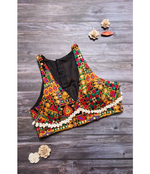 ◑ Multicoloured Rajasthani threadwork on Black fabric