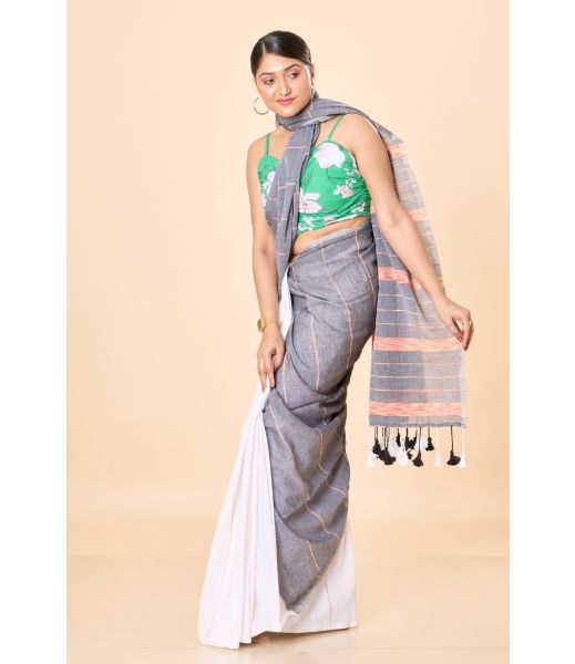 Product Description: Half & Half Grey and White Khesh Saree with Matching Blouse Piece