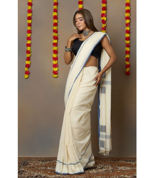 Embrace the timeless allure of Bengal craftsmanship with this Pure Cotton Off-White Bengal Handloom Saree. Handwoven by traditional artisans, this saree is a celebration of purity, minimalism, and understated elegance. The soft off-white hue symbolizes serenity and sophistication, while the fine handloom weave ensures exceptional comfort and breathability.
