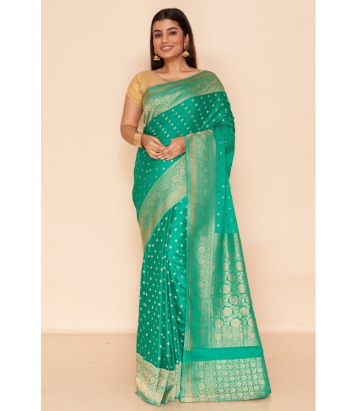 "Emerald Grace: Green Georgette Banarasi Splendor"