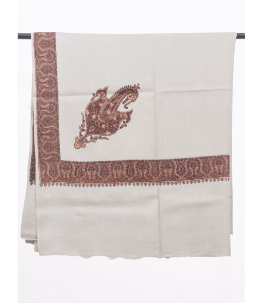 GREY COLOURED PLAIN BODY TRADITIONAL SHAWL WITH EMBROIDERED BORDER