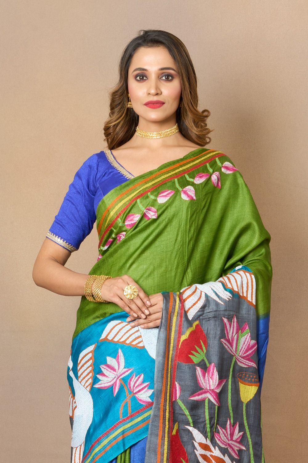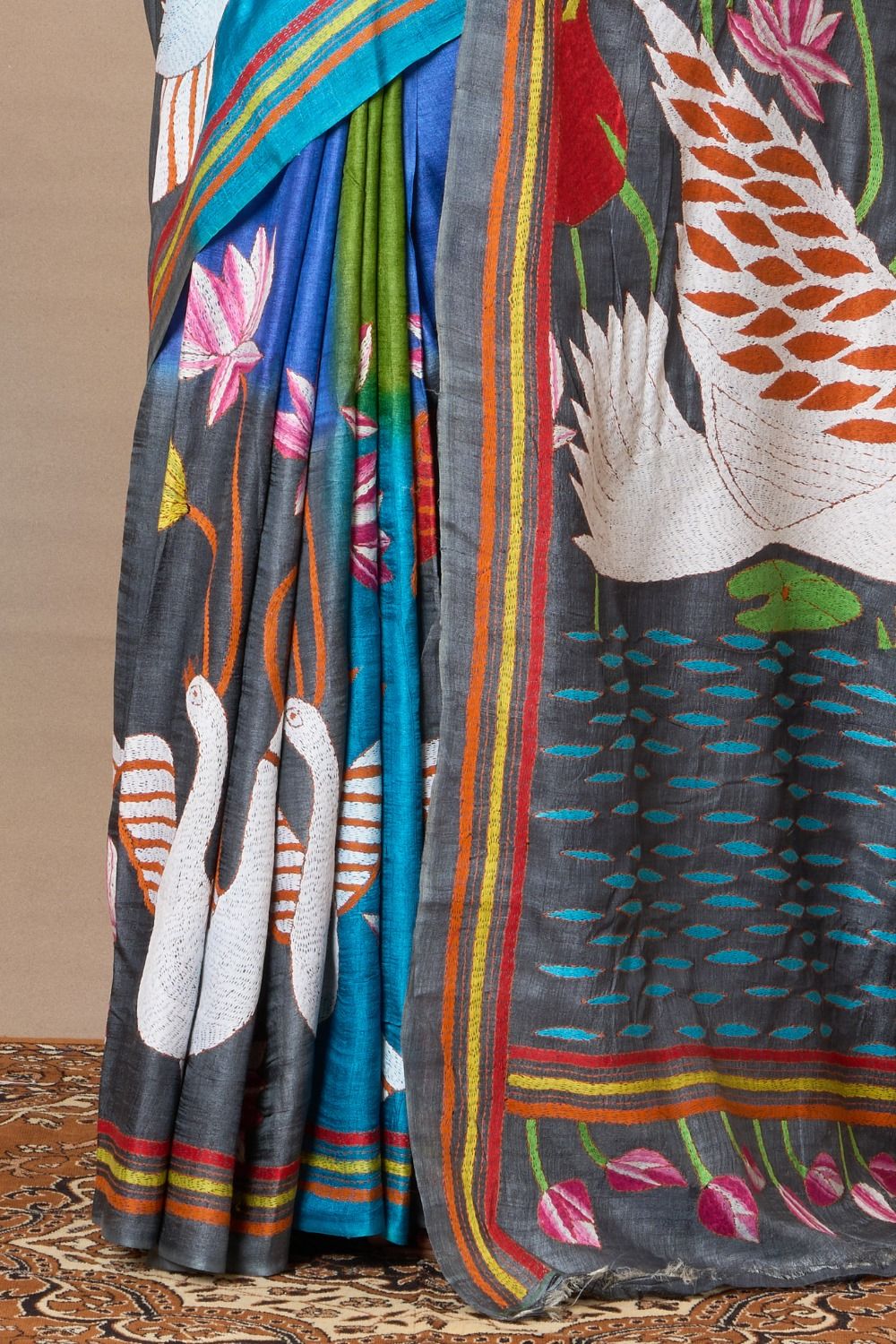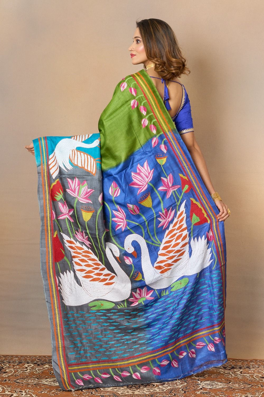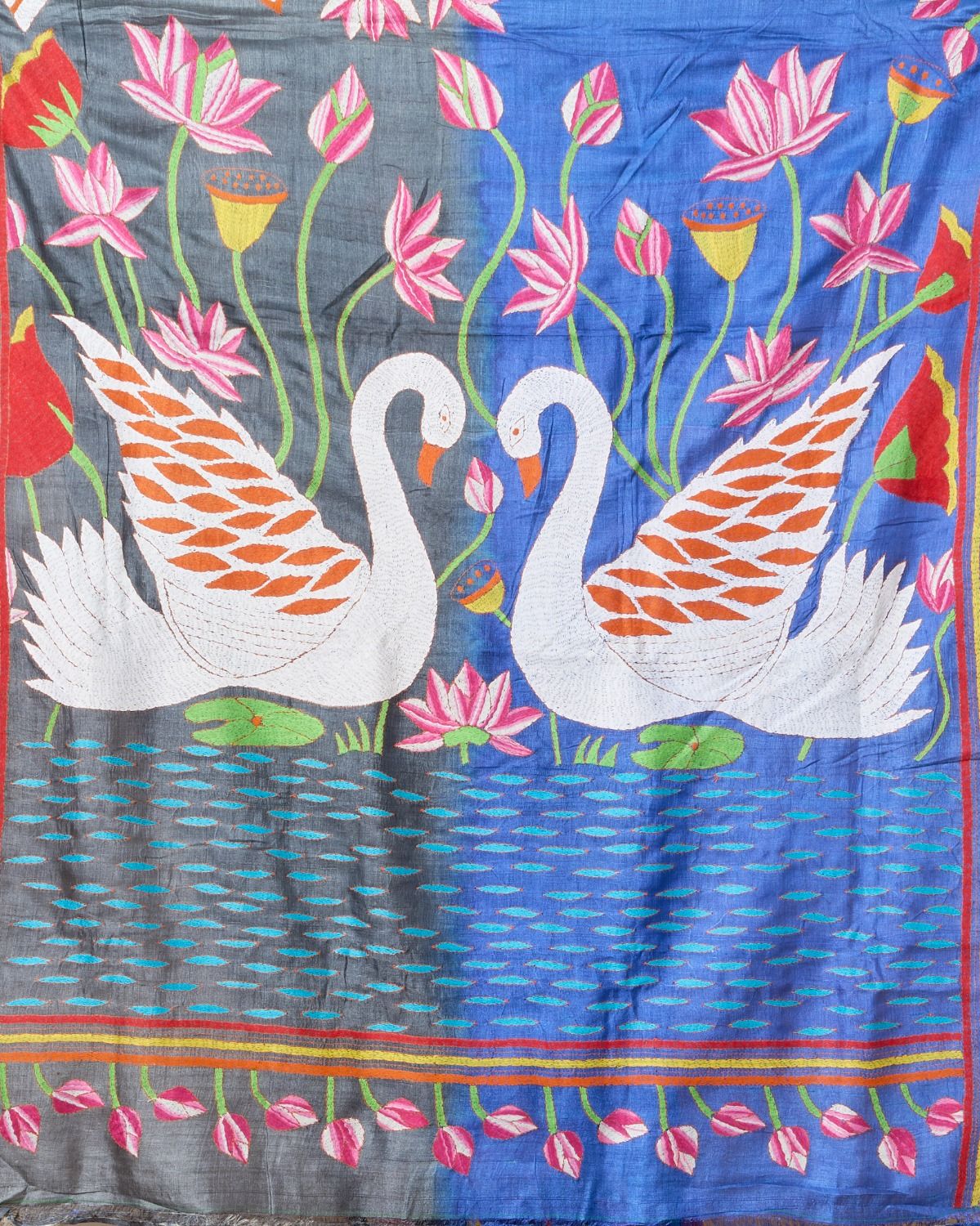 Weave: Intricate Kantha embroidery on Pure Tussar Silk – showcasing timeless craftsmanship