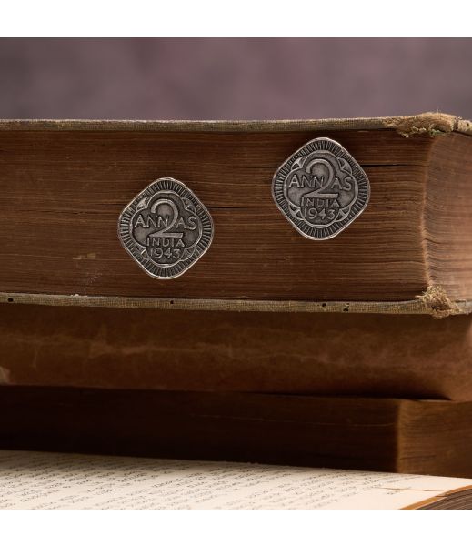 Celebrate heritage with a modern edge through these statement oxidised silver old Indian coin stud earrings. Featuring vintage coin motifs inspired by historical Indian currency, these earrings are a perfect blend of culture and contemporary fashion. The rustic oxidised finish adds a timeless appeal, making them an instant conversation starter and a must-have for lovers of traditional aesthetics.
