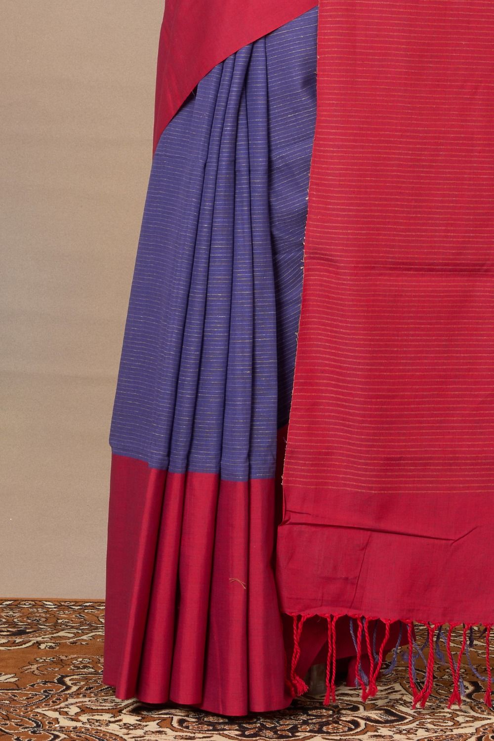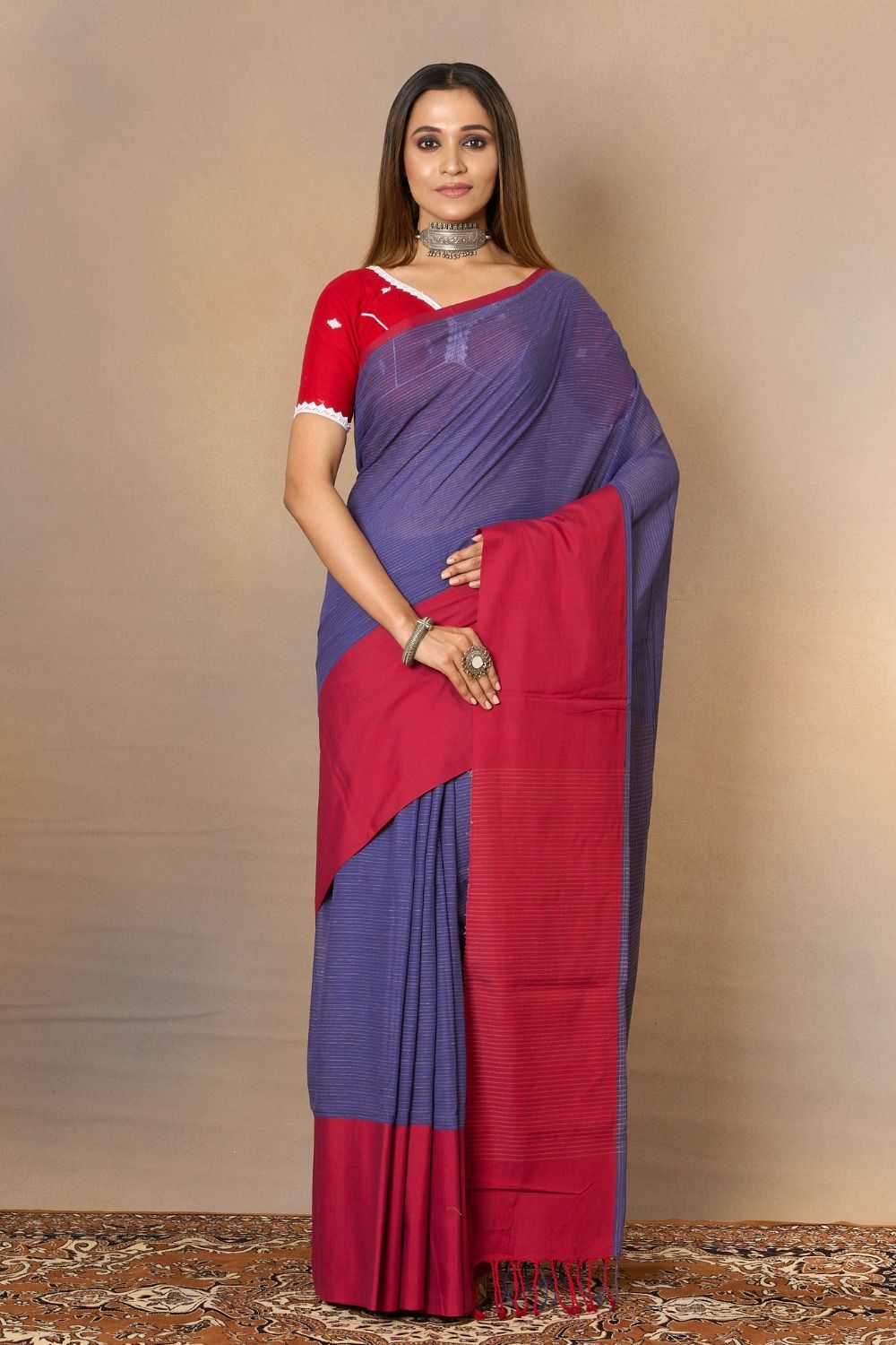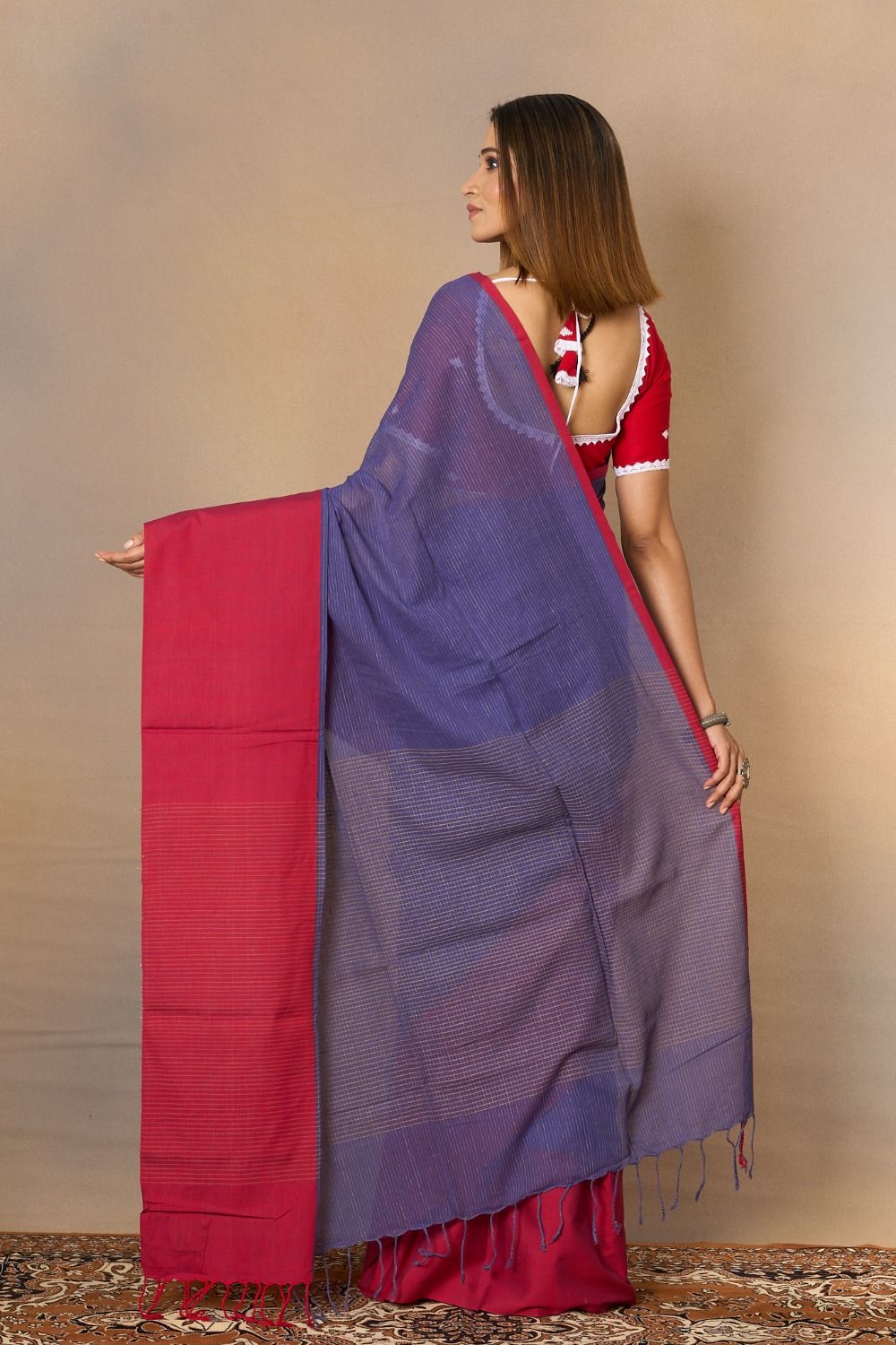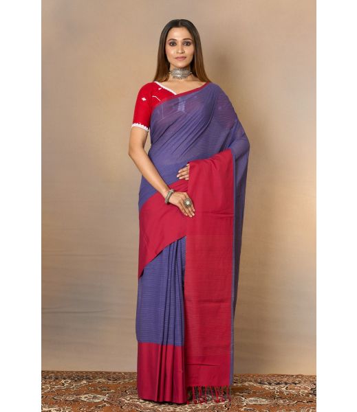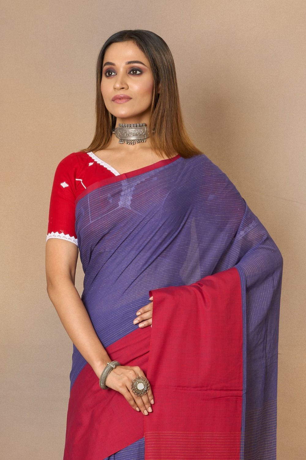 INK BLUE COTTON HANDLOOM WITH CONTRAST RED BORDER