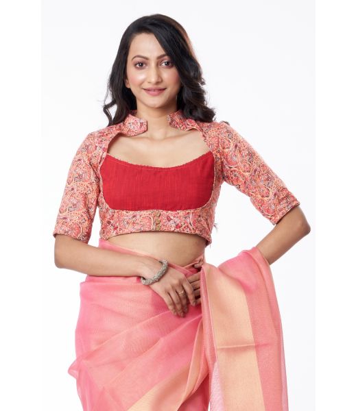 LINEN KALAMKARI PRINT JACKET STYLE BLOUSE