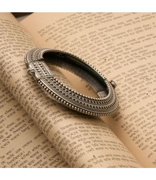 Our MOONLIGHT OXIDISED SILVER KADA (WITH A SCREW SETTING) is a beautiful blend of elegance and sophistication. Its distressed finish and intricate details evoke a sense of nostalgia and heritage."