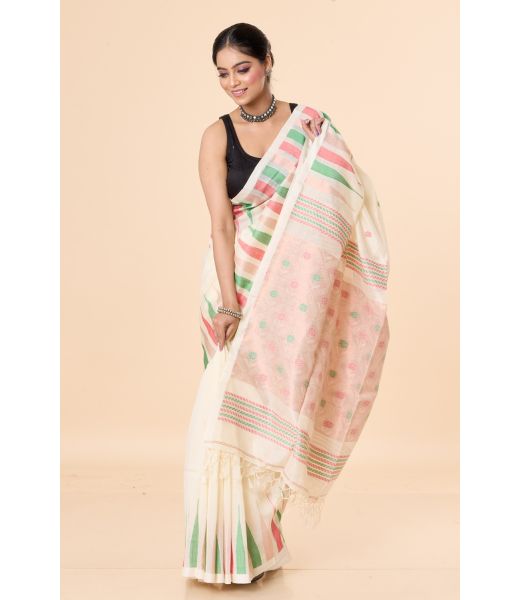 Off-White Dhakai Muslin with Temple Border Charm