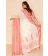 OFF WHITE SOFT HANDLOOM, CONTRAST BORDER, MATCHING BLOUSE PIECE