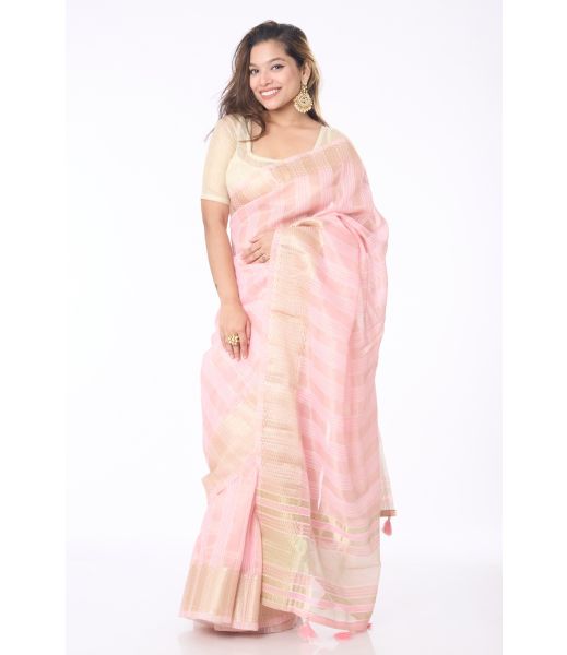 PASTEL PINK ORGANZA WITH ALL OVER THREAD WORK & MATCHING BLOUSE PIECE