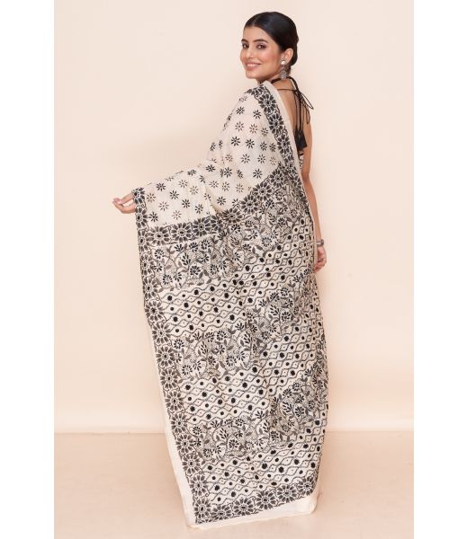 PRINTED KATHA ON KHADI COTTON, MATCHING BLOUSE PIECE