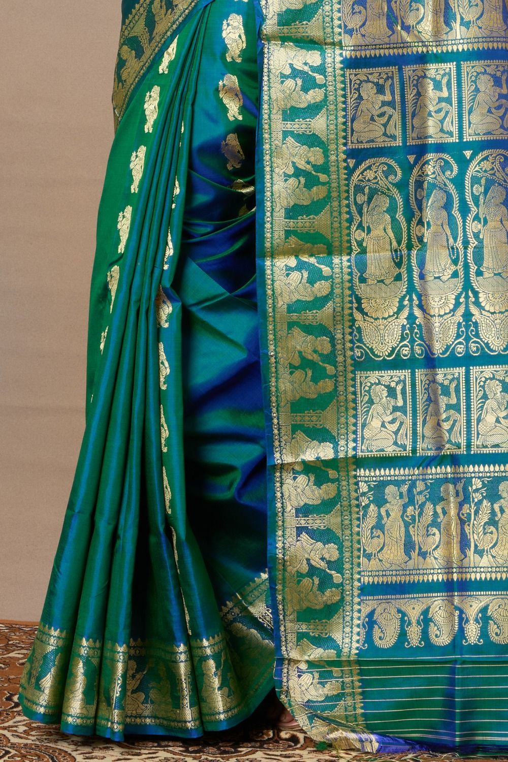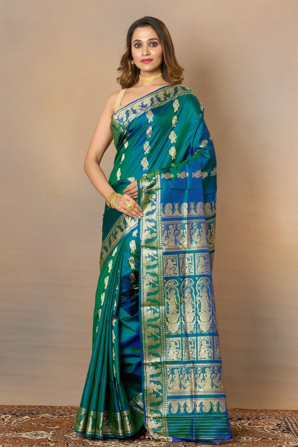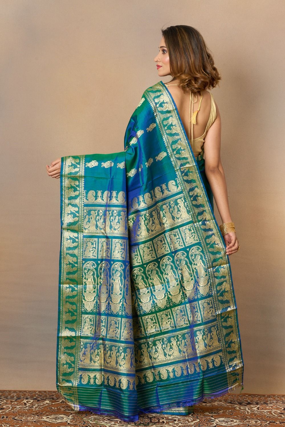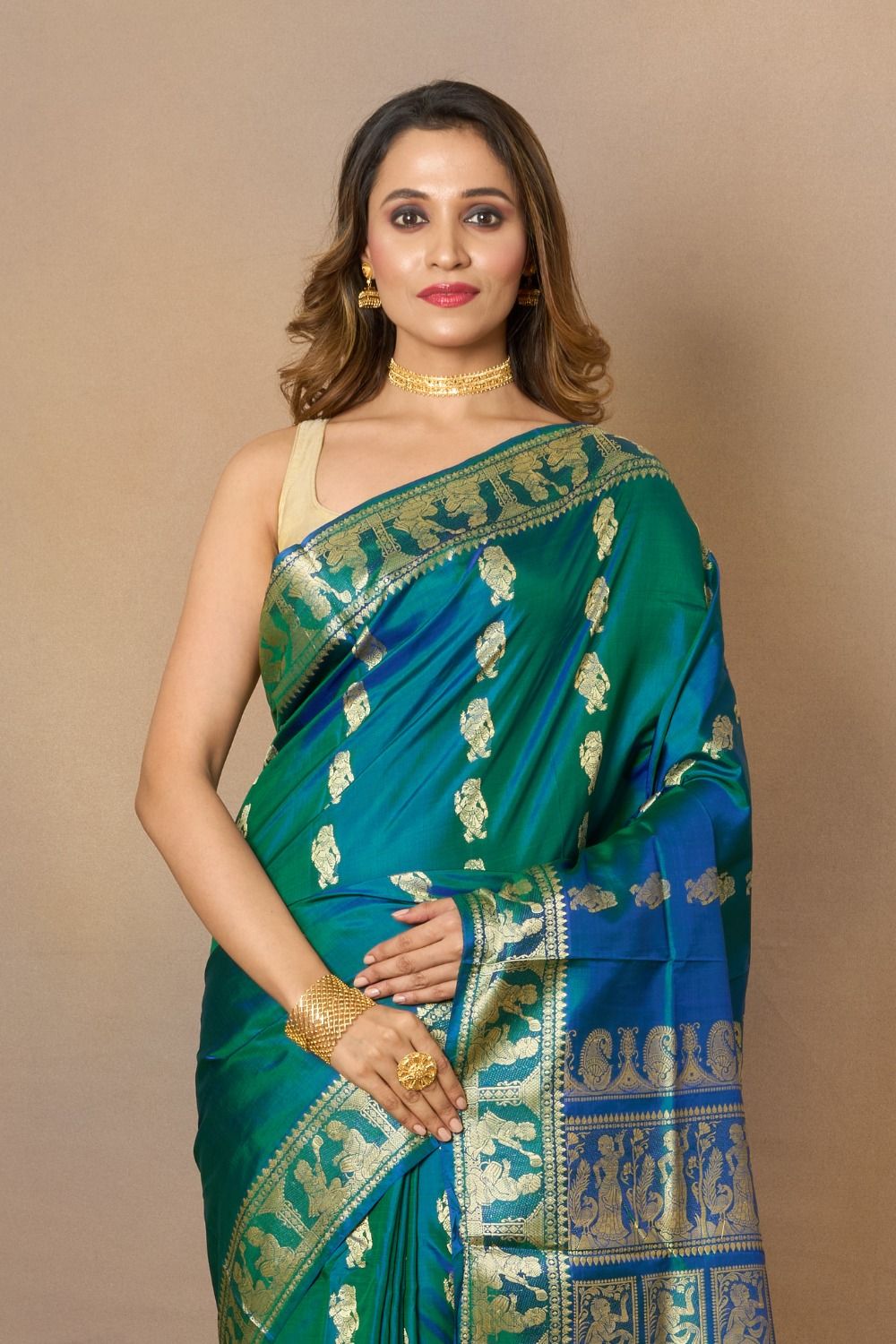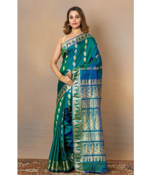 PURE PEACOCK BLUE BALUCHARI SAREE WITH ALL OVER ZARI WORK
