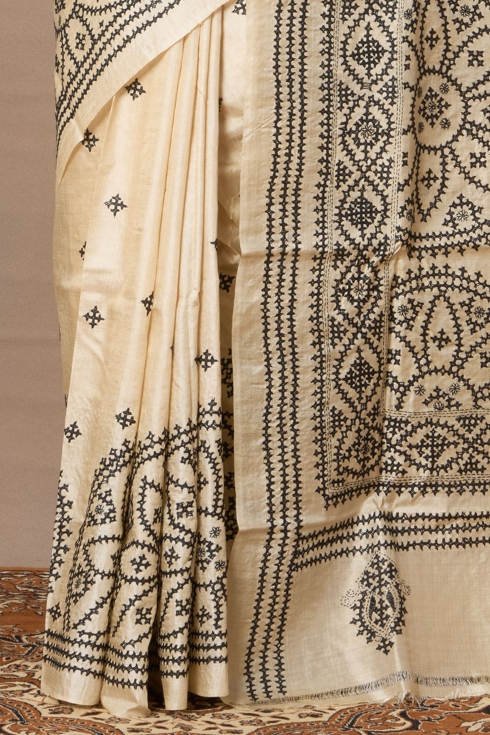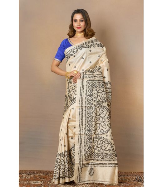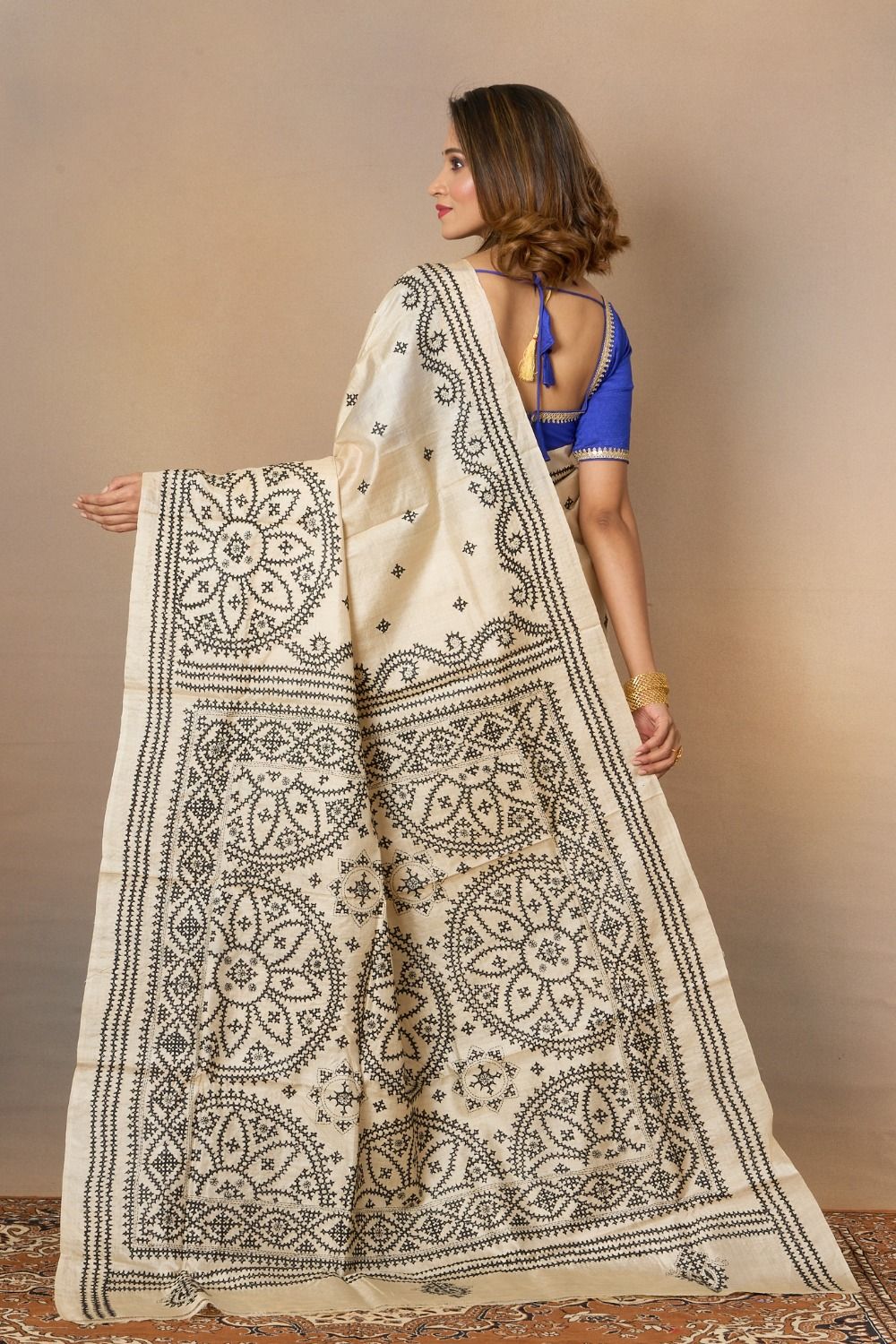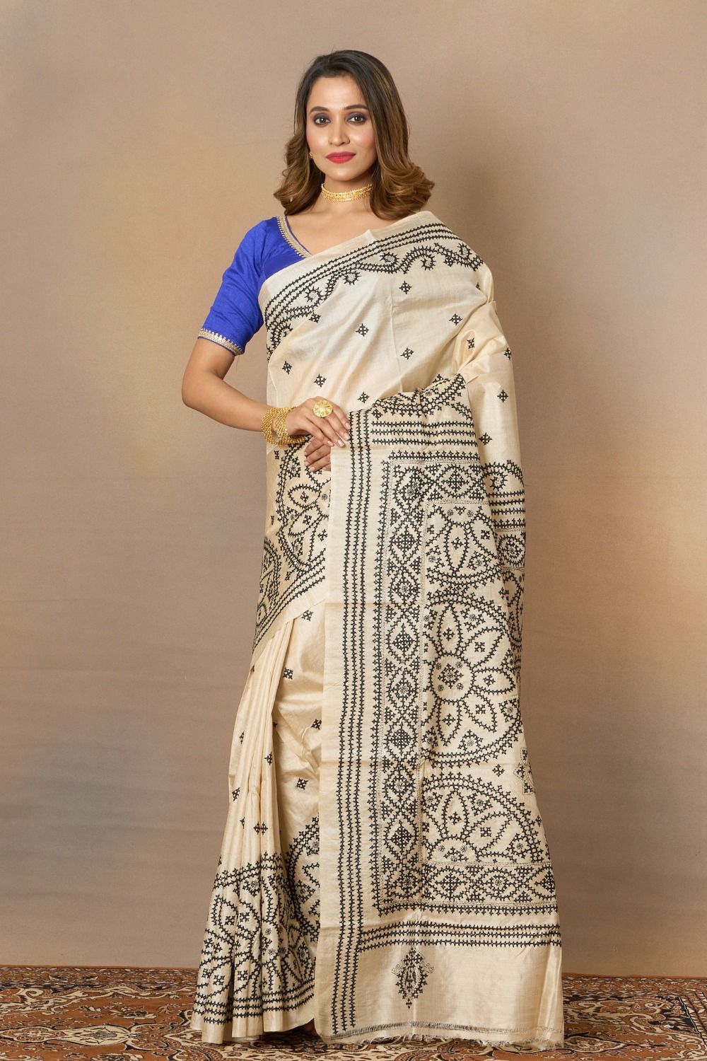 Rajwadi Resham on beige pure silk saree with Gujarati work