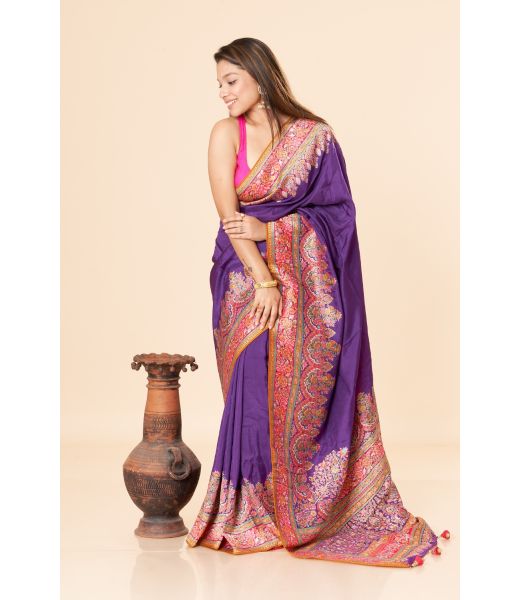 - Classic Kashmiri weaving techniques enhance the saree’s timeless elegance.