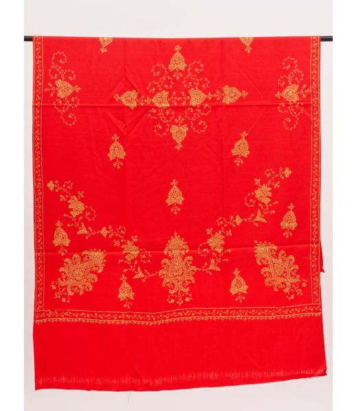 RED SHAWL WITH ALL OVER EMBROIDERY WORK