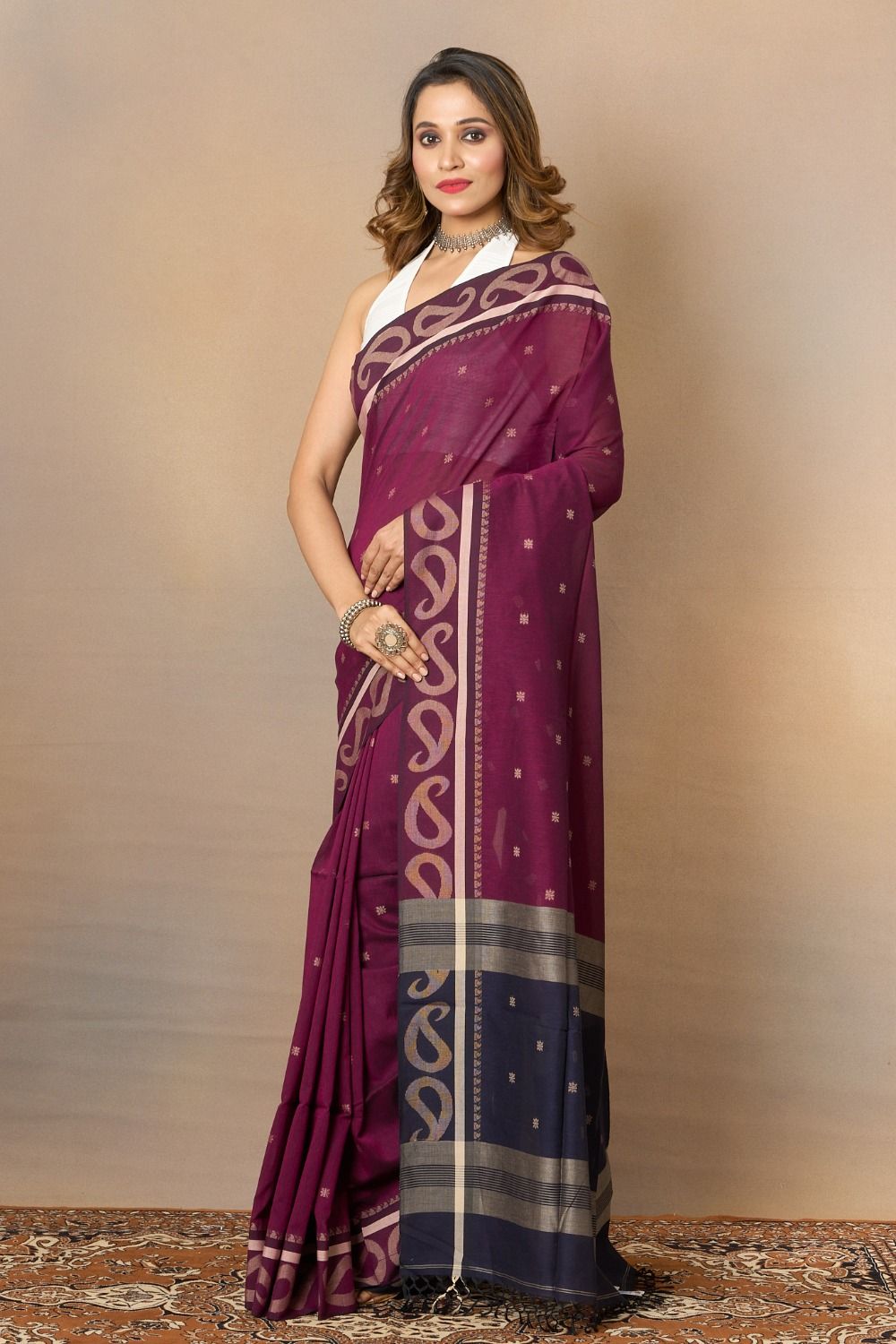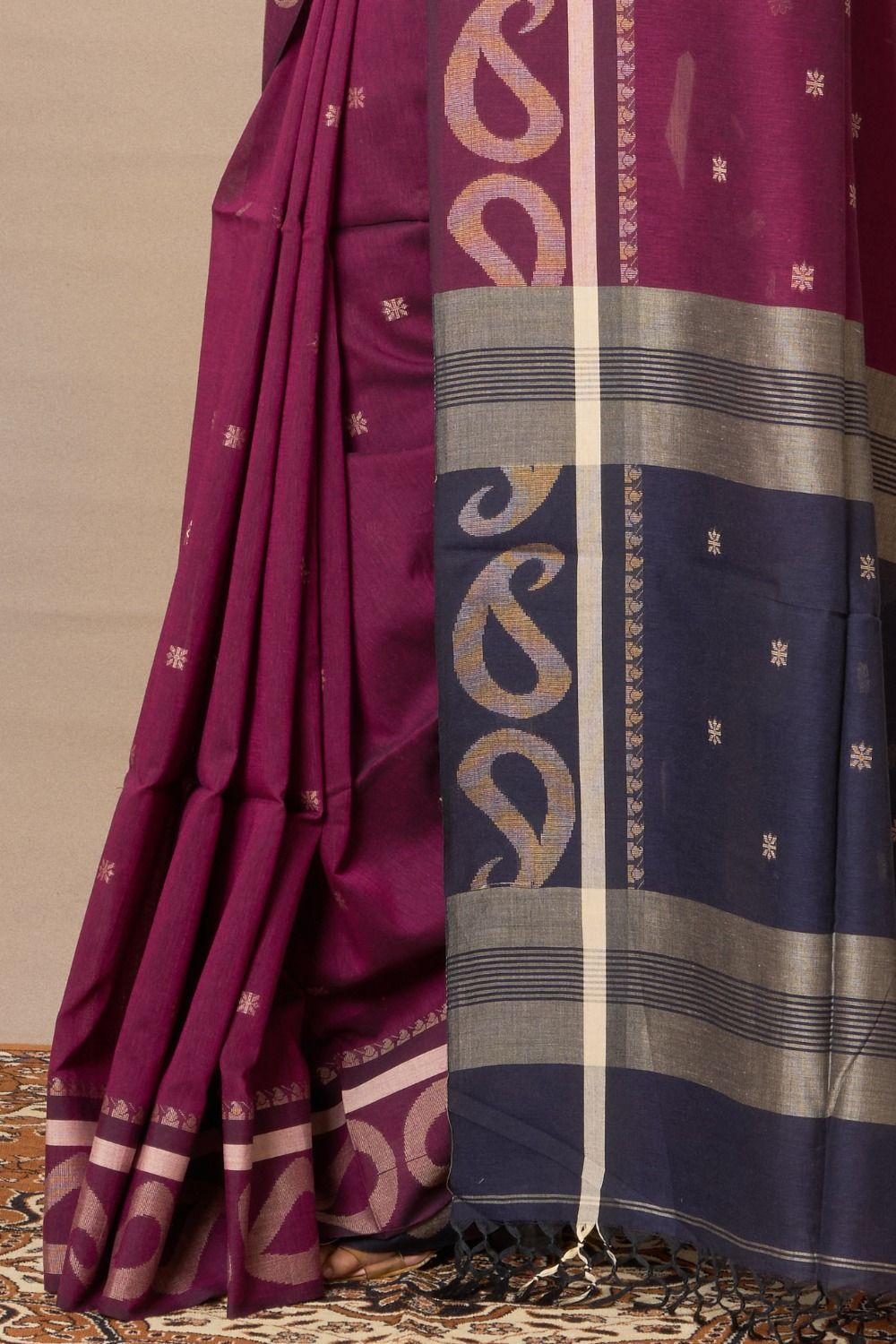 Dhakeswari Bastralaya products are unique. There is one of each product. Therefore, once sold the exact piece may not be back in stock.