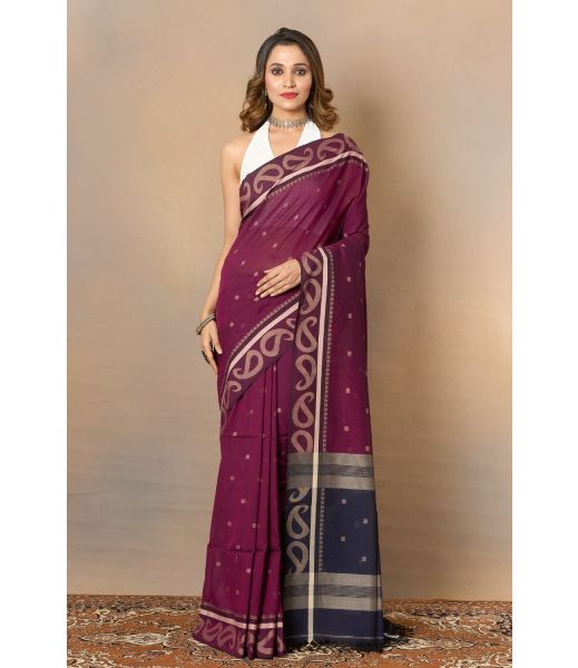 This saree combines the softness of fine handloom with the richness of resham thread work, making it a timeless choice for graceful drapes.