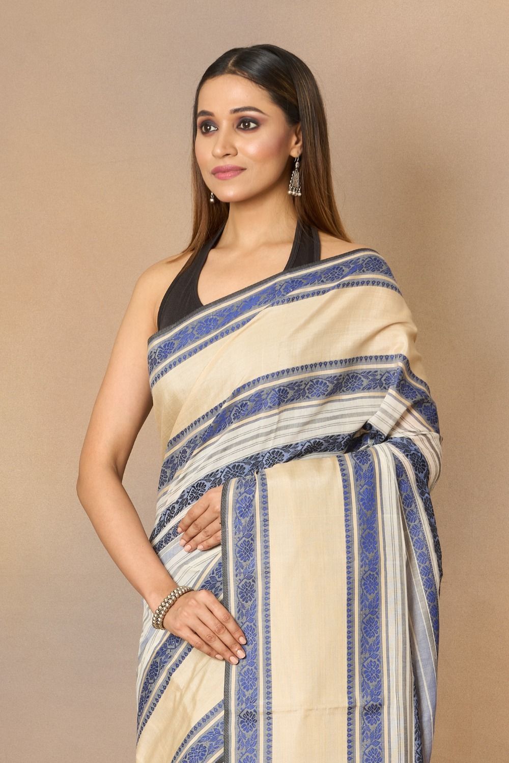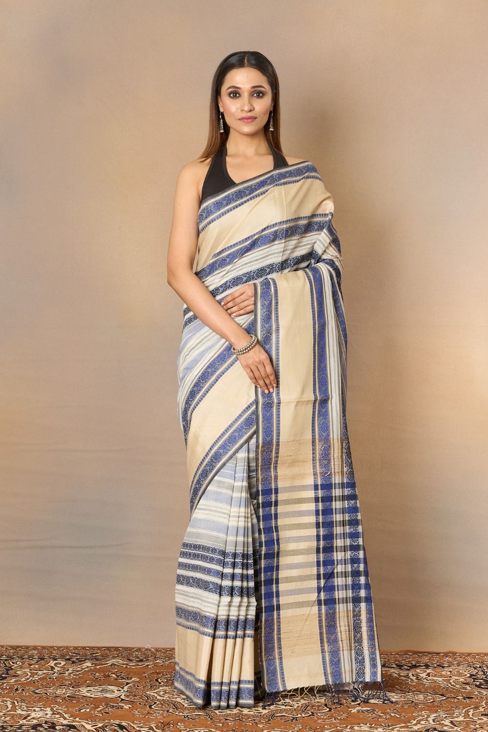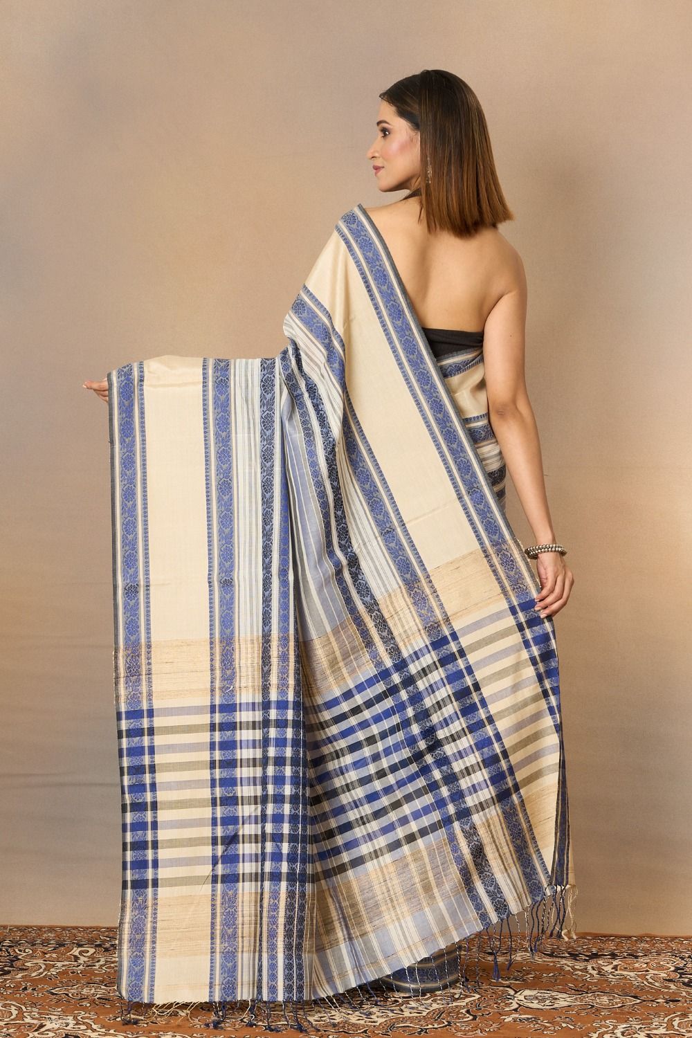Add a touch of elegance and artisanal beauty to your ethnic wardrobe with this stunning Cream Handloom Saree with Multicolour Work. Crafted with love and care, this saree bears the Handloom Mark, assuring authenticity and quality in every thread. The soothing cream base comes alive with vibrant multicolour detailing, offering a perfect balance of subtlety and vibrance.
