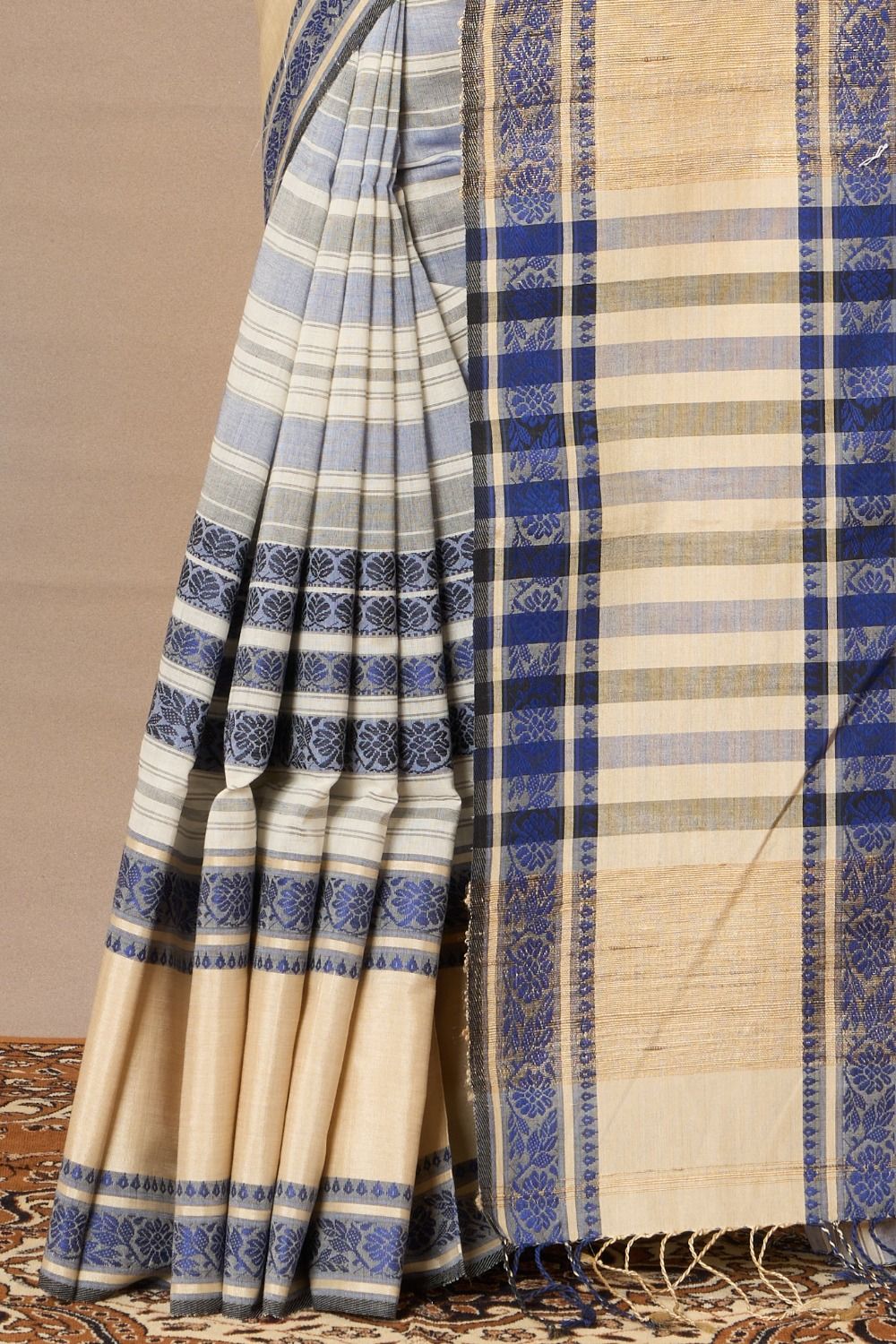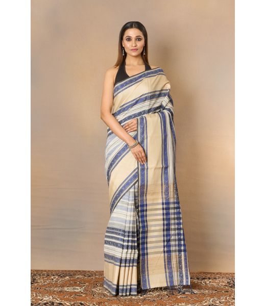 SOFT PURE HANDLOOM SAREE WITH ALL OVER BLUE STRIPES