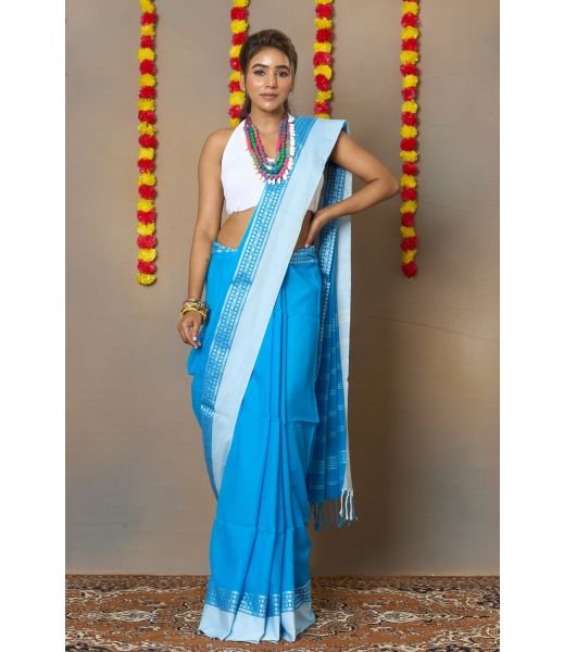 Crafted from finely handwoven pure cotton, this saree drapes effortlessly, offering breathability and grace for all-day wear. Its minimal aesthetic and refined texture make it a versatile choice — from casual gatherings to festive mornings.